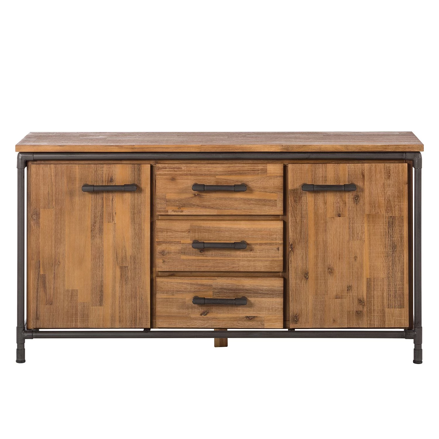 - Plateau supérieur, porte et tiroirs : acacia massif teinté et brossé