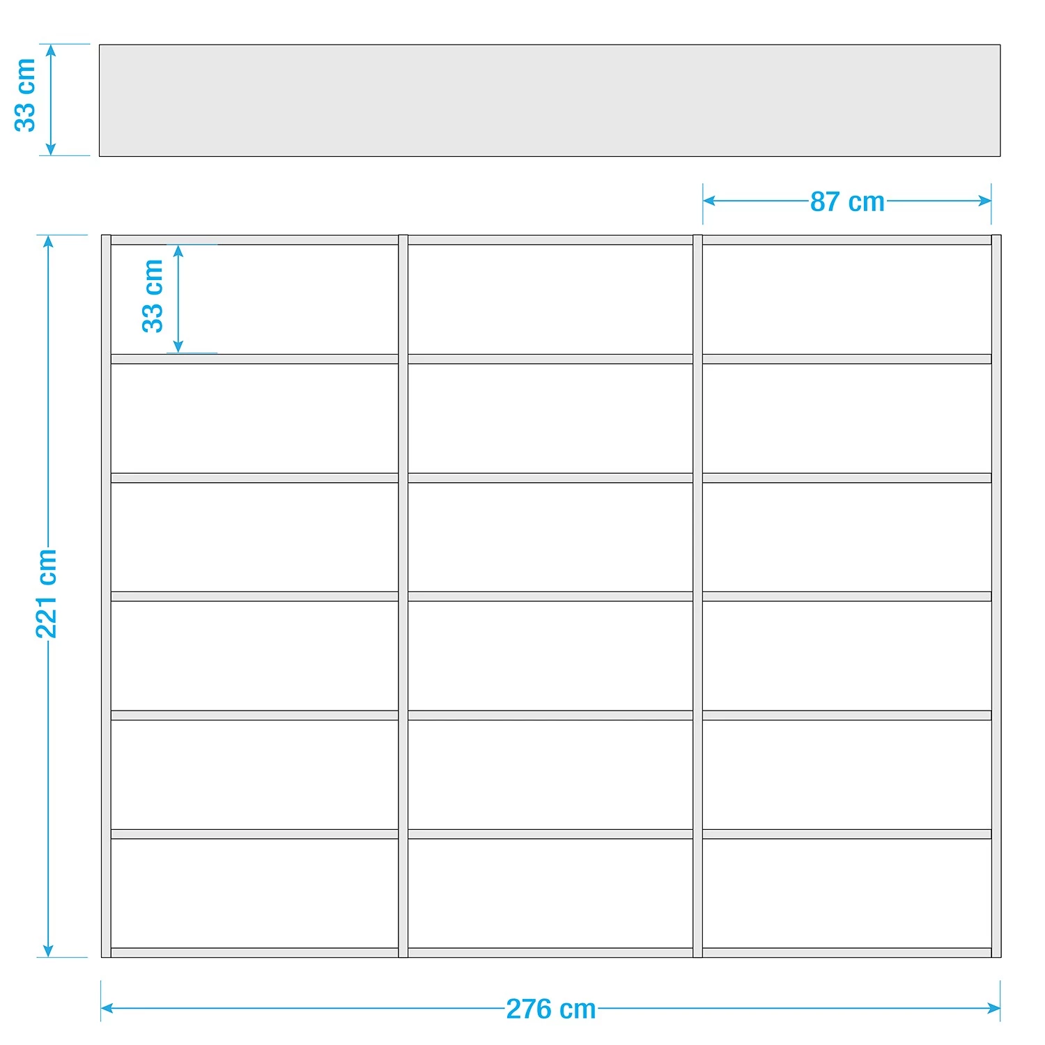 - Hauteur des compartiments avec agencement standard des étagères : 32,9 cm
