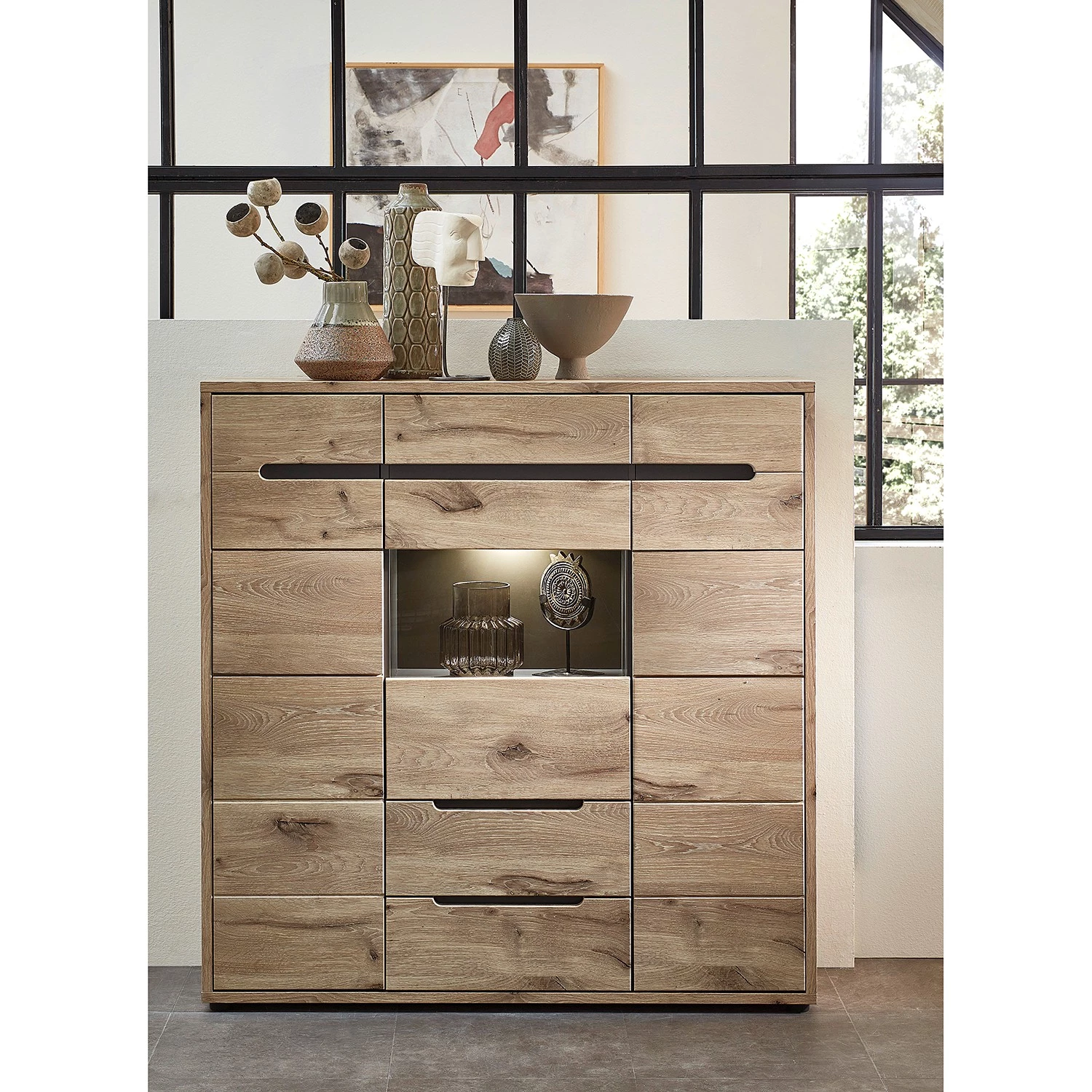 - Contenu de la livraison : Buffet haut avec éclairage inclus, sans accessoires