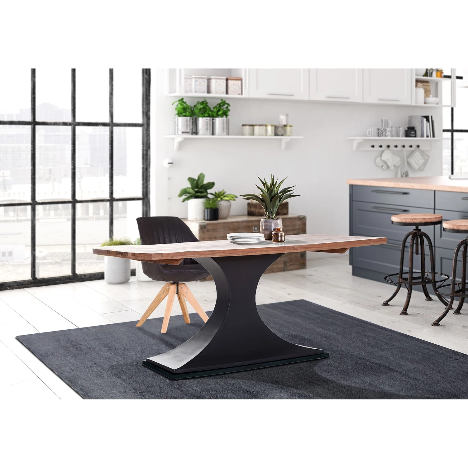- Plateau de table : acacia massif teinté, verni et ciré