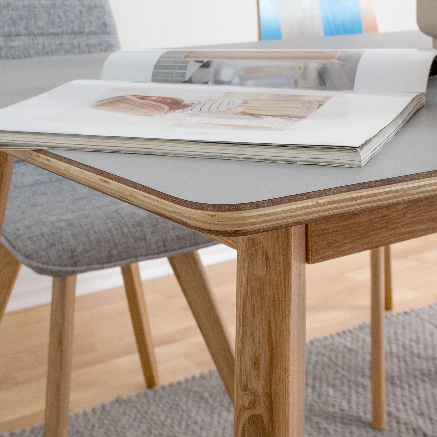 - Plateau de table : HPL (stratifié haute pression) verni