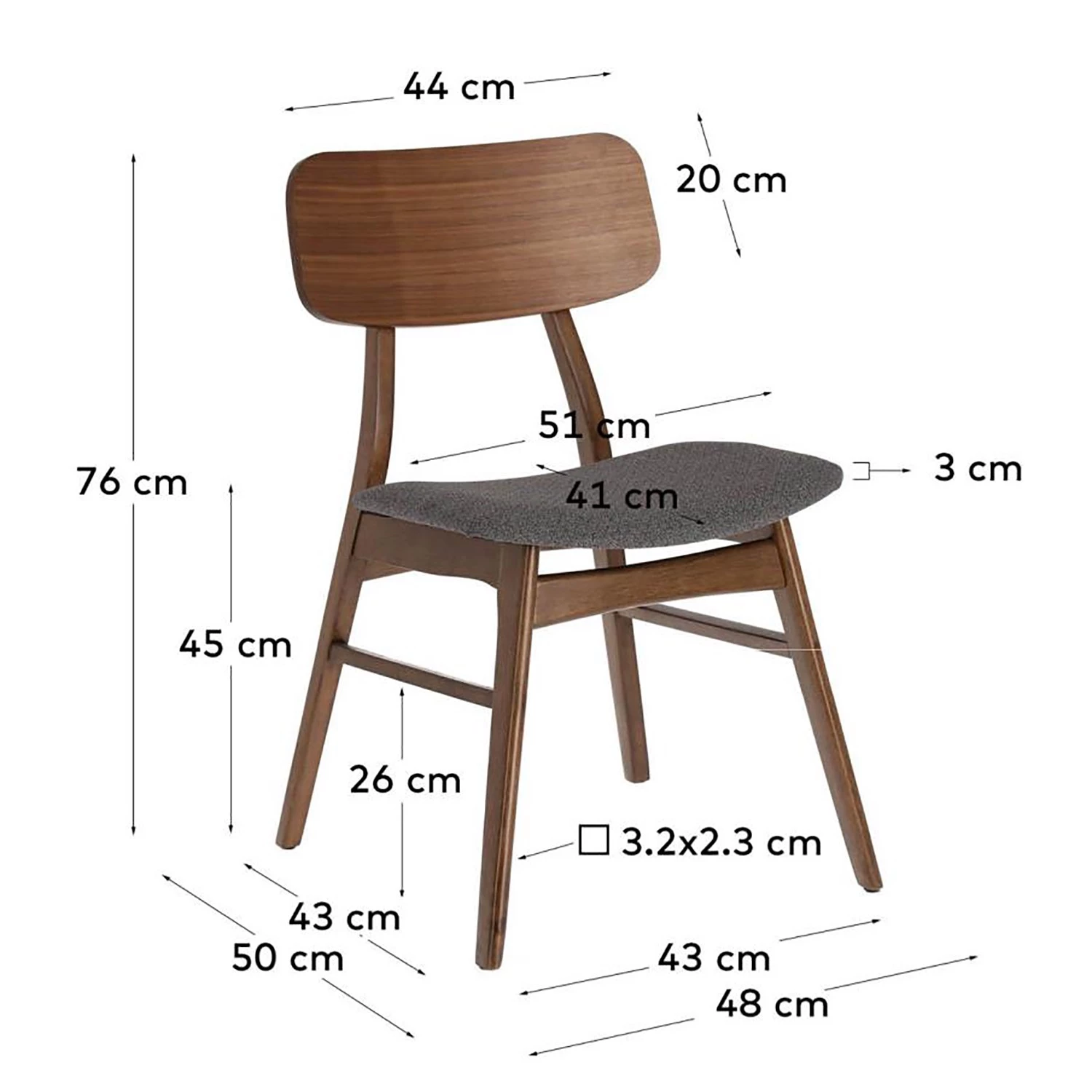 - Hauteur d’assise : 45 cm