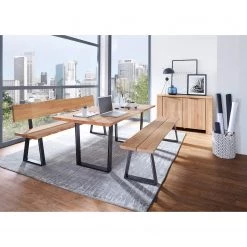 Schösswender Banc avec dossier Oviedo IV – Chêne sauvage massif / Métal – Chêne sauvage / Noir – Largeur : 200 cm
