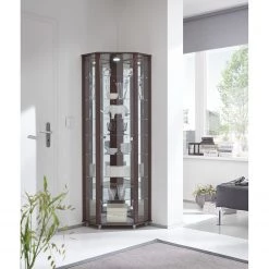 Fredriks Vitrine d’angle Amalia II – Éclairage inclus – Imitation frêne foncé – Imitation wengé
