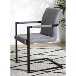 Loftscape Chaise à accoudoirs Keldur II (lot de 2) – Tissu / Acier – Gris / Noir