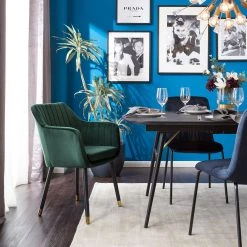 Jack & Alice Chaise avec accoudoirs Leezy G – Chêne massif / Velours – Vert / Noir