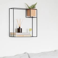 Umbra Étagère murale Cubist I – Métal / Hêtre massif – Noir / Hêtre